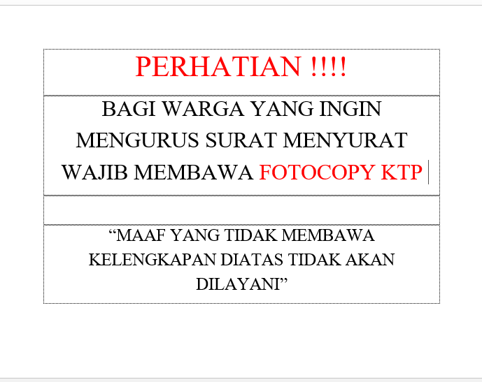 BAGI WARGA YANG INGIN MENGURUS SURAT MENYURAT WAJIB MEMBAWA FOTOCOPY KTP ......